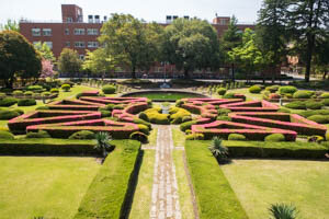 フランス式庭園のツツジが咲き始めています